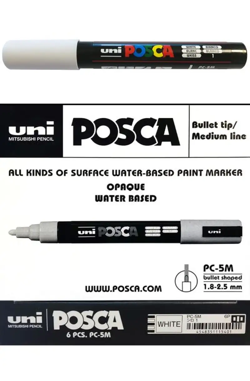 (PACK 6U.) MARC UNI-POSCA PC5M COLOR BLANCO PUNTA 1,8-2,5MM