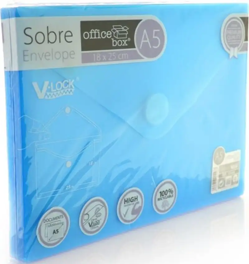 PAQ/10 SOBRE A5 V-LOCK 180X250 MM VELCRO COLOR AZUL