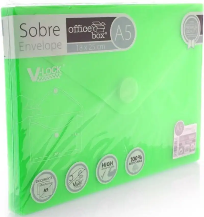 PAQ/10 SOBRE A5 V-LOCK 180X250 MM VELCRO COLOR VERDE
