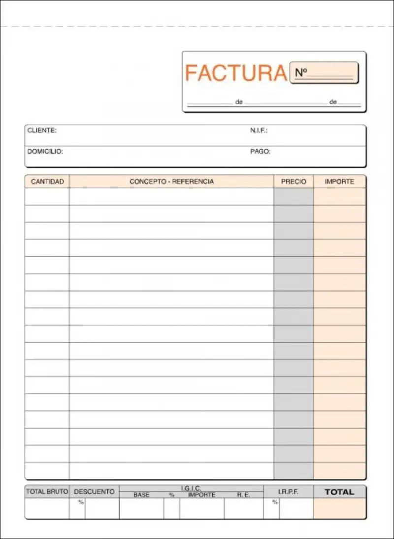 PAQ/10 TALONARIOS DE FACTURAS 1/3 Fº NATURAL DUPLICADO IGIC