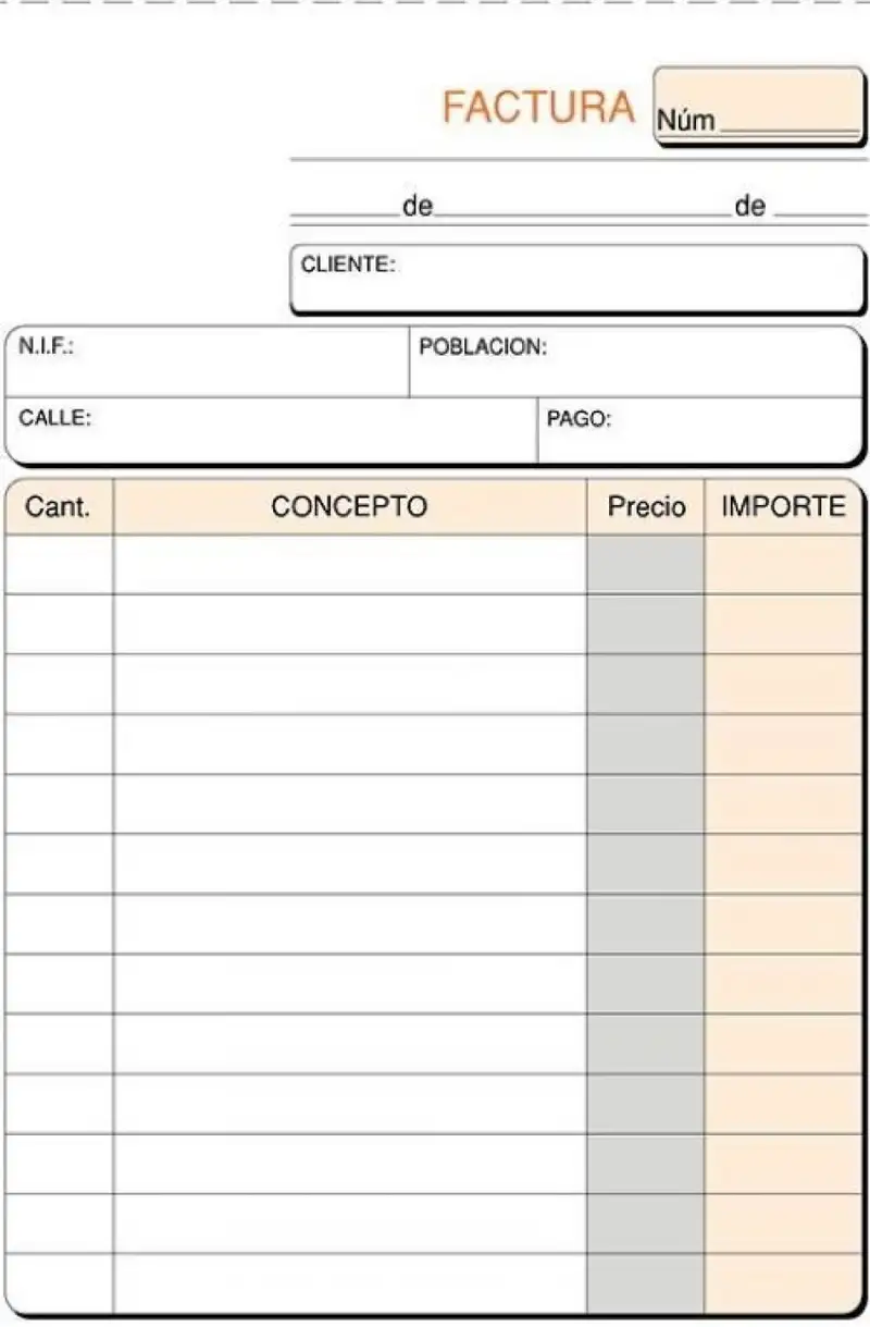 Talonario preimpreso de Facturas. 50 juegos de 2 hojas. Autocopia duplicado > original y una copia. Tamaño octavo natural. Modelo T-68.