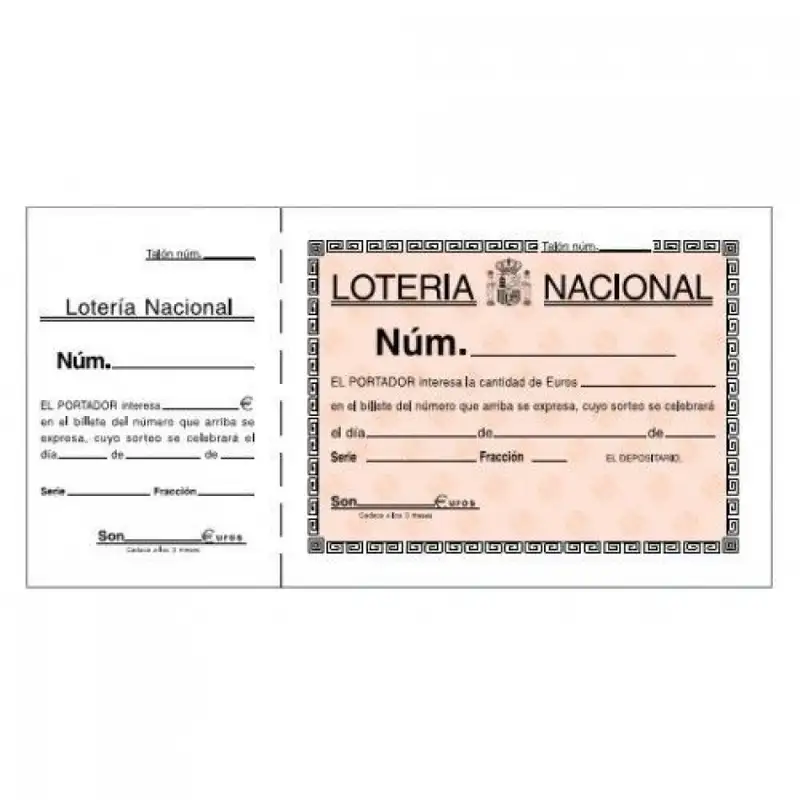 Talonario preimpreso de Lotería. 100 hojas. Sin autocopia > sólo original. Con matriz > para quedarse con el resguardo. Tamaño 110 x 205 mm. apaisado. Modelo T 15.