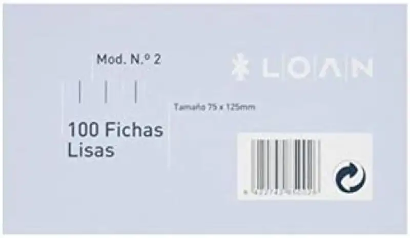 Fichas lisas Número 2 75 x 125 mm Paquete de 100 unidades