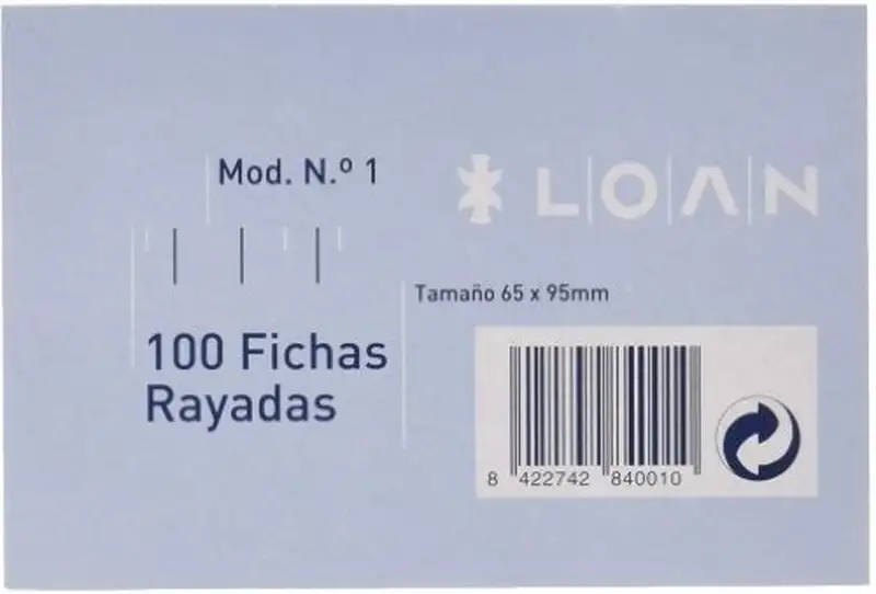 Fichas rayadas Número 1 65 x 95 mm Paquete de 100 unidades