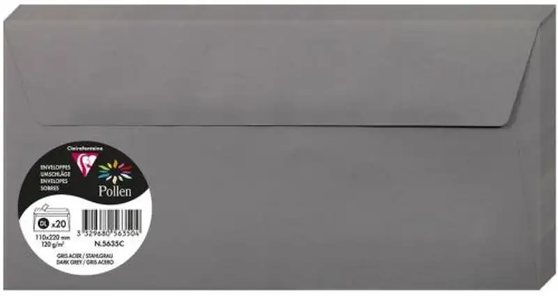 PAQ/20 SOBRE POLLEN 110X220 COLOR GRIS ACERO