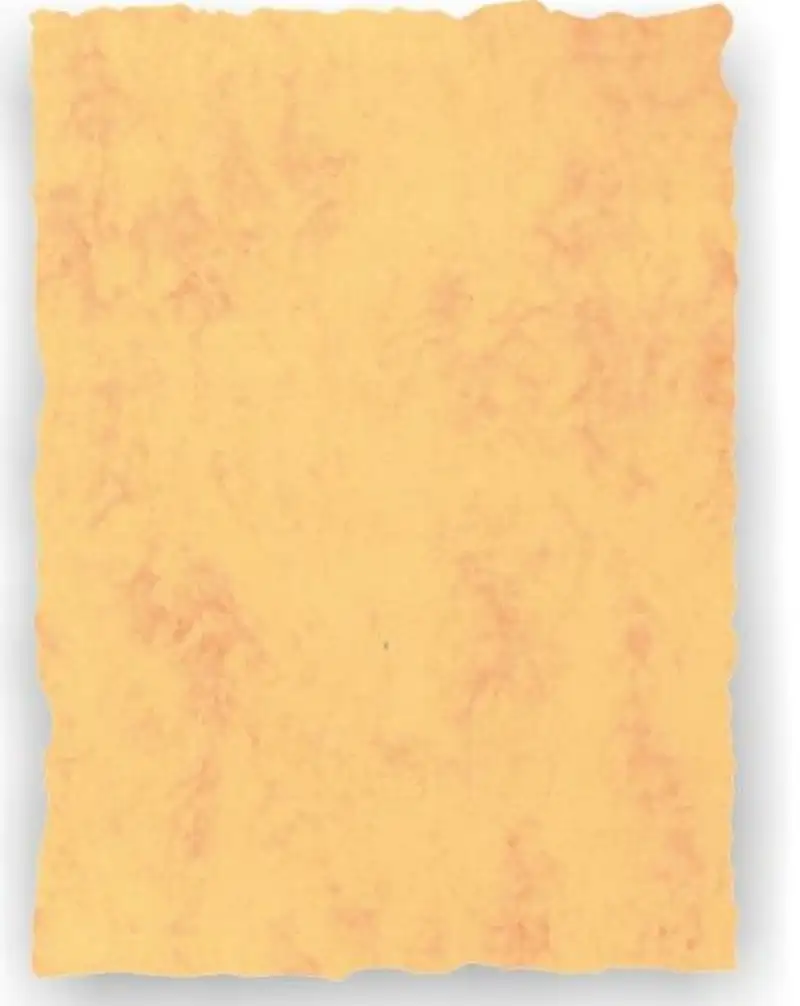 Papel pergamino con impregnación a dos caras y borde troquelado que simula perfectamente un pergamino. Aunque el dibujo aparece homogéneo > ninguna hoja es igual a la otra. Papel de gran resistencia. Ideal para múltiples aplicaciones: diplomas > heráldica > cartas de menú > etiquetas > tarjetas > estuches > etc. Tamaño Din A4. Paquete de 25 hojas.
