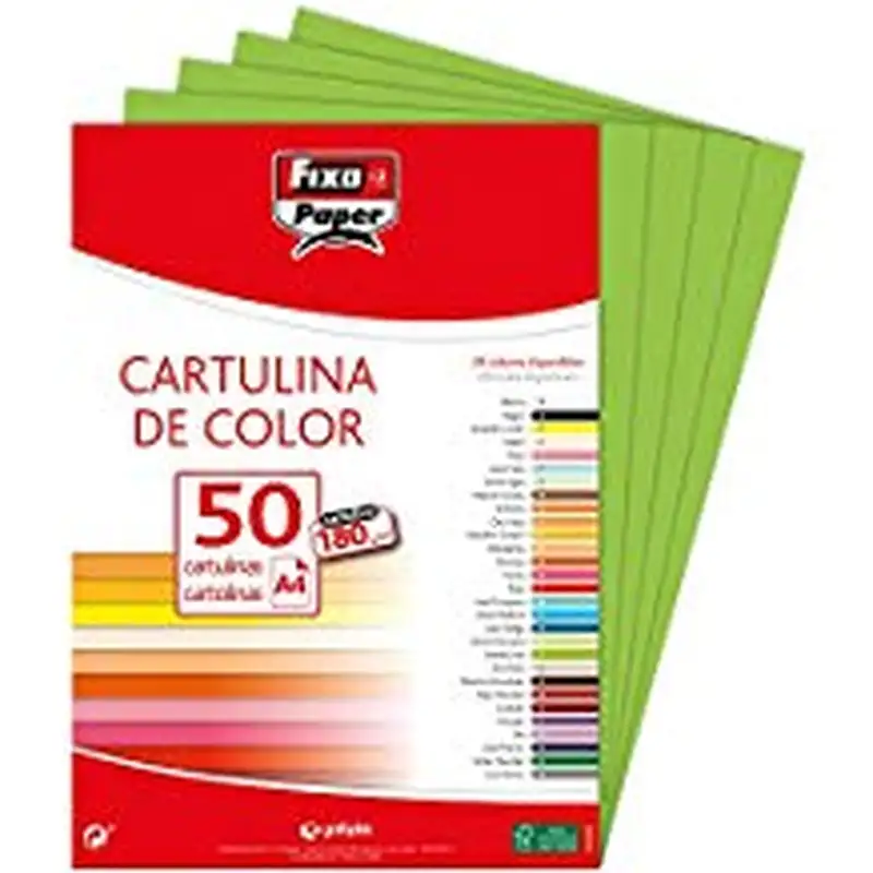 PAQ/50 CARTULINAS FIXO A4 180G. VERDE LIMA