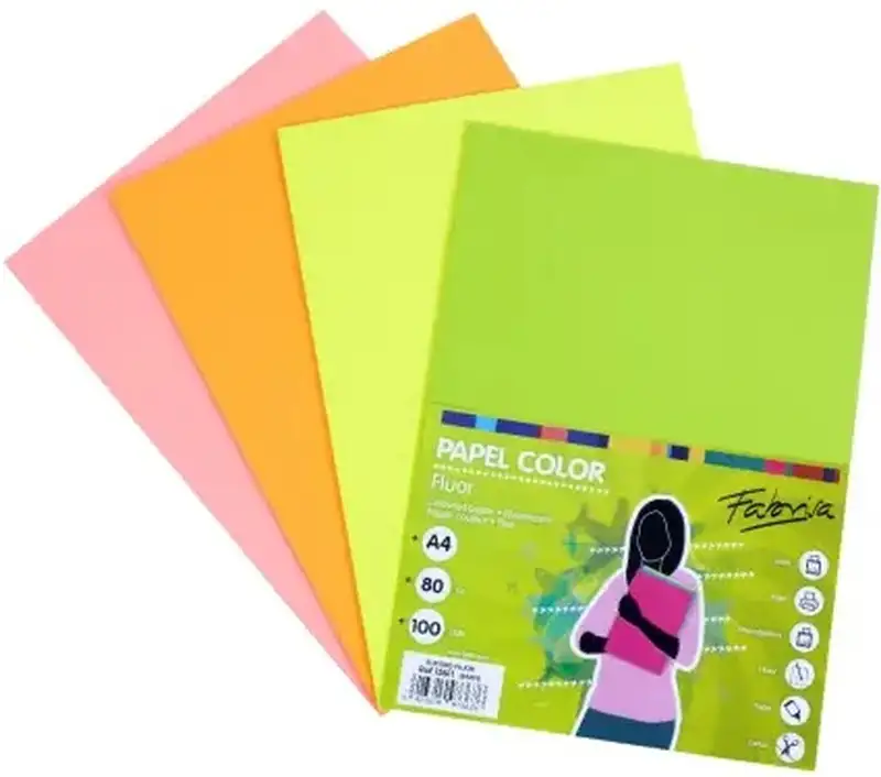PAQUETE A4 100H 80G 5 COLORES FLUOR SURTIDOS FABRISA