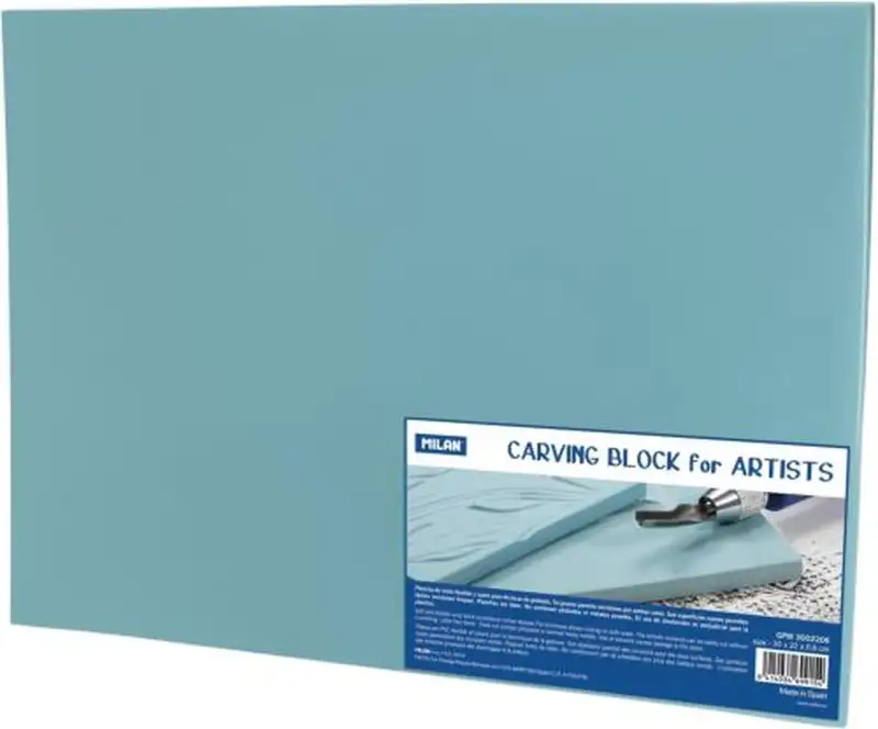 Las planchas de grabado Carving Block de color azul > están indicadas para trabajos artísticos y para manualidades. Una plancha de vinilo flexible y suave para técnicas de grabado. Sus superficies suaves permiten fáciles incisiones limpias con gubias ppegrabado en relieve en ambos lados. Carving block permite una definición precisa en el trazo y la realización de detalles en distintos grosores. La plancha se lava fácilmente después del uso y puede reutilizarse. La plancha no contiene ftalatos ni metaLapesados. El uso de disolventes es perjudicial para la plancha.