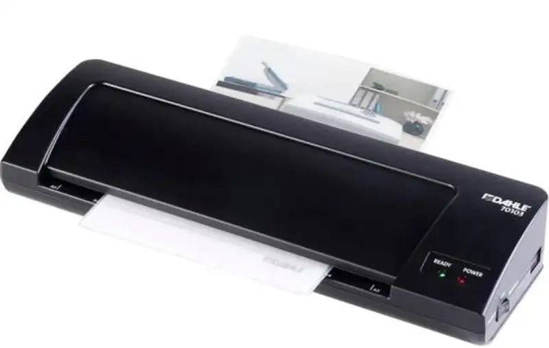 Protección duradera contra la humedad y la contaminación para sus documentos importantes > fotos > tarjetas de visita > certificados > tarjetas de identificación > marcadores y mucho más. Después de solo 3 û 5 minutos de tiempo de calentamiento > listo para laminar > también es posible laminar en frío con el dispositivo Folier. Fácil de usar y un diseño moderno y compacto para cualquier oficina u hogar. Formatos hasta A3 posibles > ancho máximo de trabajo de 325 mm > grosor de lámina de hasta 125 micras. > grosor máximo de 0,5 mm. Laminador con dos rodillos de silicona calentados con una velocidad de trabajo de 250 mm/minuto.