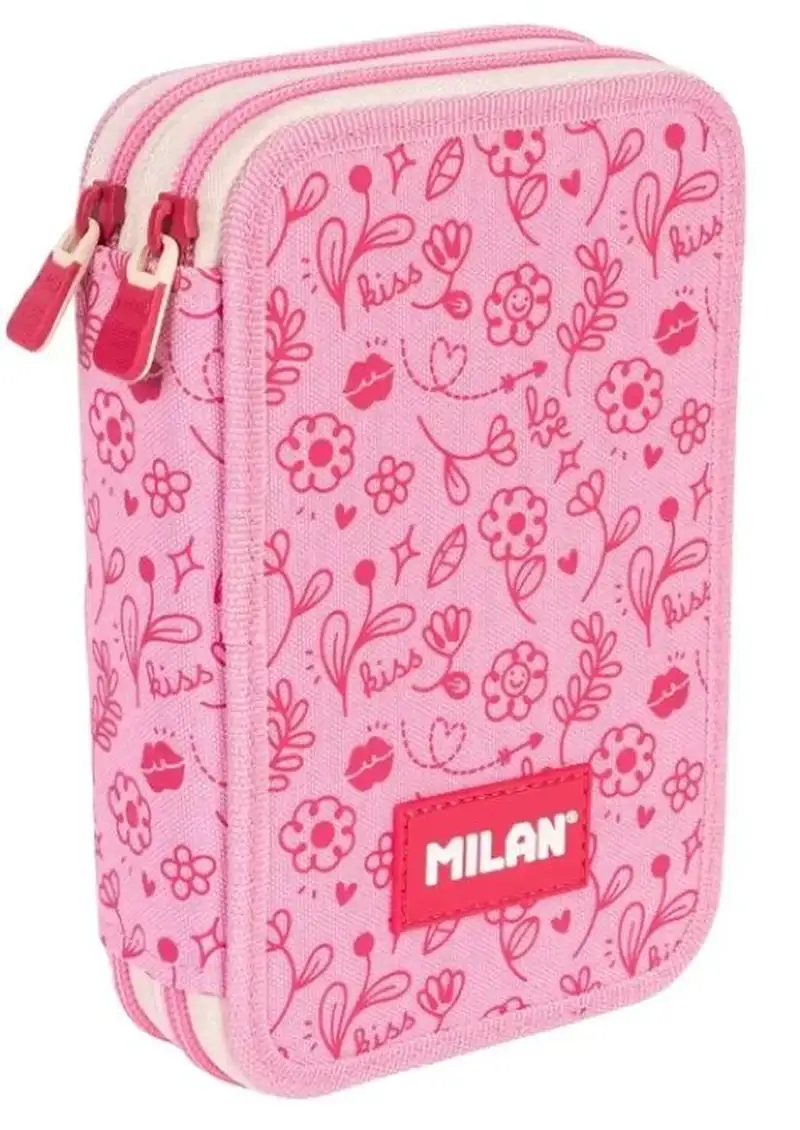 Estuche de 2 pisos que permite mantener el material escolar siempre ordenado y de fácil acceso. Material incluido: 2 gomas de borrar (4024 y Nata blue) > 1 sacapuntas Afila > 1 lápiz de grafito HB > 1 bolígrafo P1 tinta azul > 1 regla triangular de 15 cm > 12 lápices de colores triangulares y 18 rotuladores de punta cónica. Color rosa. Colección Flowicorn con diseños de unicornios > flores y corazones en tonos rosados y azules > que invita a soñar e imaginar historias de fantasía. Composición tejido: poliéster. Medidas: 19,5 x 13 x 5 cm.