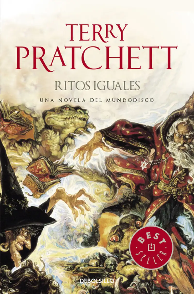 Tercera entrega de una saga irresistible. Terry Pratchett es uno de los escritores más populares del Reino Unido, ha sido traducido a más de treinta idiomas y lleva vendidos cincuenta millones de ejemplares en todo el mundo. ¿Su secreto? Nada escapa a la mirada inteligente, desenfadada e irónica de este autor que, en la mejor tradición satírica británica, subvierte todos los géneros. De la serie del Mundodisco han sido traducidos al castellano El color de la magia, La luz fantástica, Ritos iguales, Mort, Rechicero, ¡Guardias! ¡Guardias!, Pirómides, Brujerías, El país del fin del mundo, Dioses menores, Imágenes en acción, El segador, Brujas de viaje, Lores y damas, Hombres de armas, Soul Music, Eric, Tiempos interesantes, Mascarada, Pies de barro, Papá puerco, ¡Voto a bríos!, Carpe Jugulum, El Quinto Elefante, La verdad, El ladrón del tiempo y El último héroe. Un mago moribundo cede su bastón -y por tanto su poder- a Eskarina, un recién nacido que, según los rituales admitidos, no puede ser mago sino bruja. Con el tiempo, el rito de iniciación se completa con un aprendizaje más formal en la Universidad Invisible, inefable centro de estudios esotéricos, donde el mago Simón hace gala de sus increíbles poderes. Juntos, Eskarina y Simón tendrán que hacer frente a una invasión de extrañas criaturas que amenazan con destruir Mundo Disco… En esta nueva novela de la serie, las aventuras y peripecias de los personajes se multiplican a la par que las carcajadas del lector.