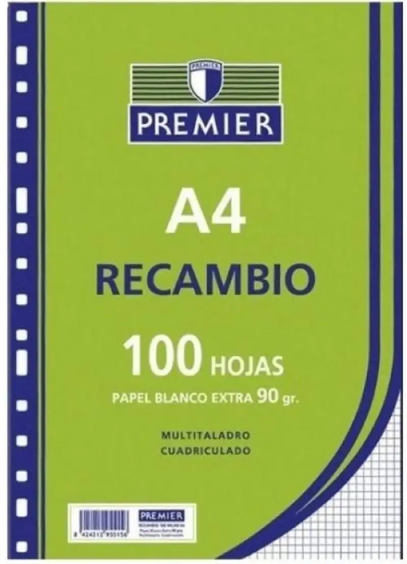 RECAMBIO A4 100H 4 TALADROS 90G CUAD.46 C/M PREMIER