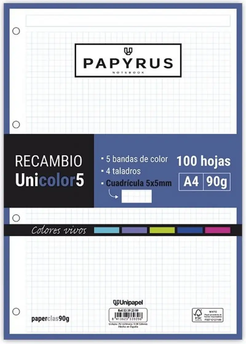 RECAMBIO UNI5 A4 100H 90G 4 TALADROS CUADRICULA 5X5 VIVOS