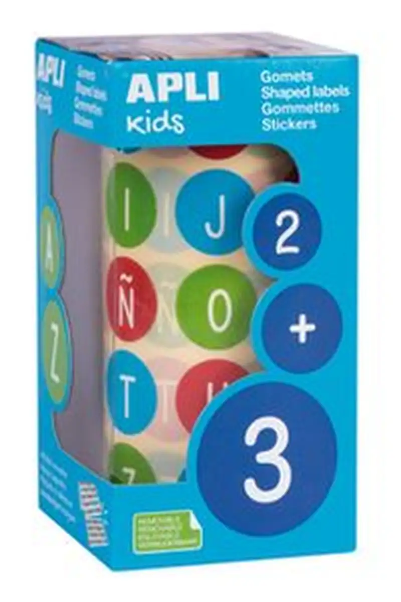 ROLLO GOMETS REDONDOS DE COLORES CON LETRAS MAYUSCULAS 20MM