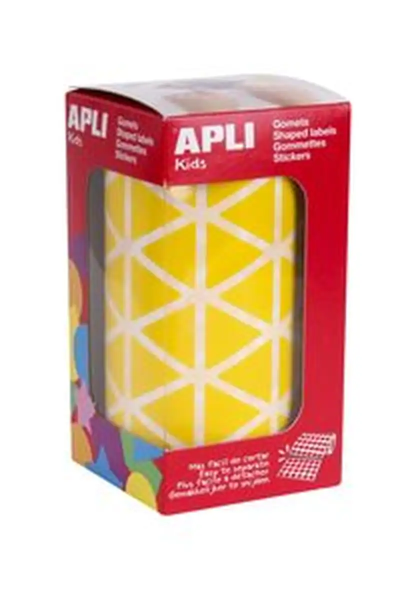 Gomets autoadhesivos en forma de triángulo color amarillo. Equiláteros > con un diámetro de 20mm.