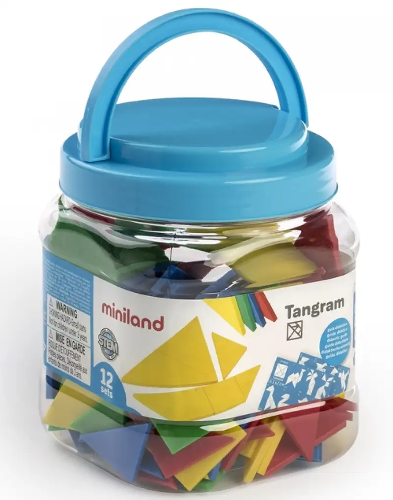 El tradicional juego chino que consiste en crear formas reconocibles a partir de las 7 figuras básicas que aporta. Ideal para estimular la creatividad y favorecer la estructuración espacial. Fabricados en plástico muy resistente, irrompible.