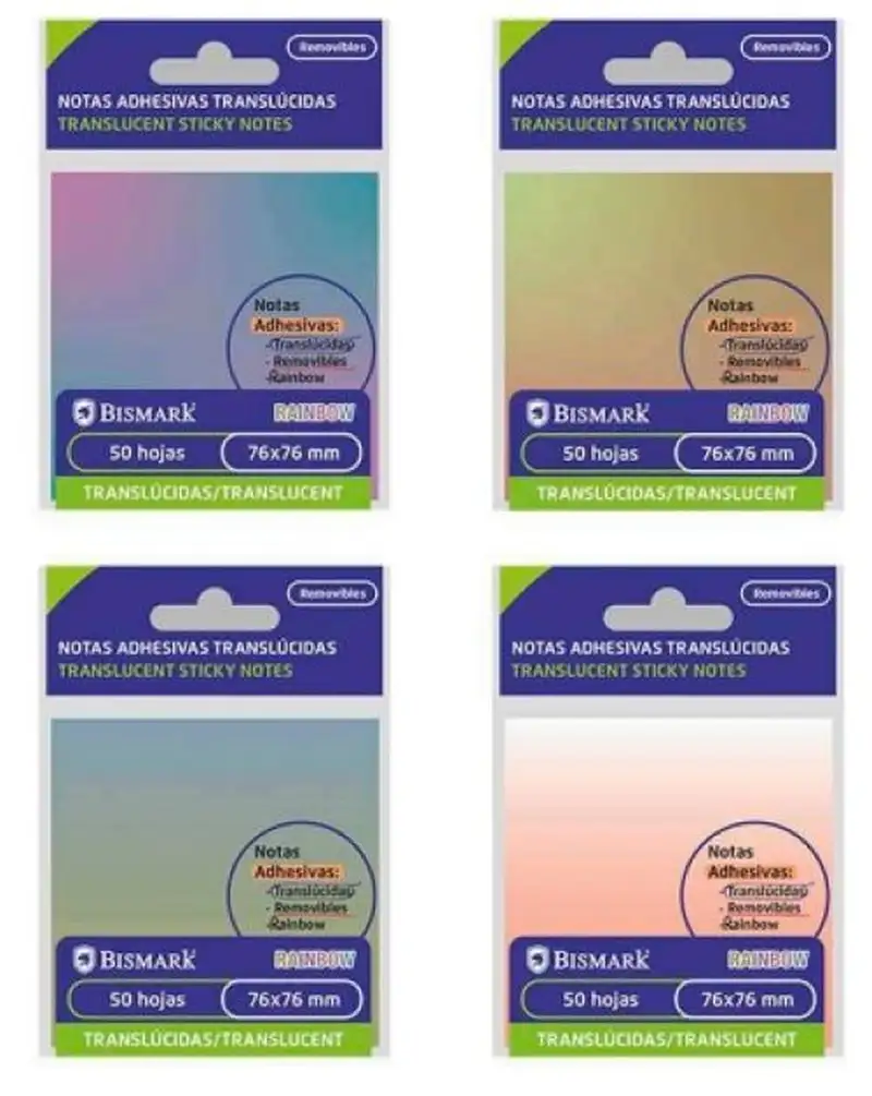 TACO NOTAS ADHESIVO BISMARK TRANSLUCIDO 76X76MM SURTIDO