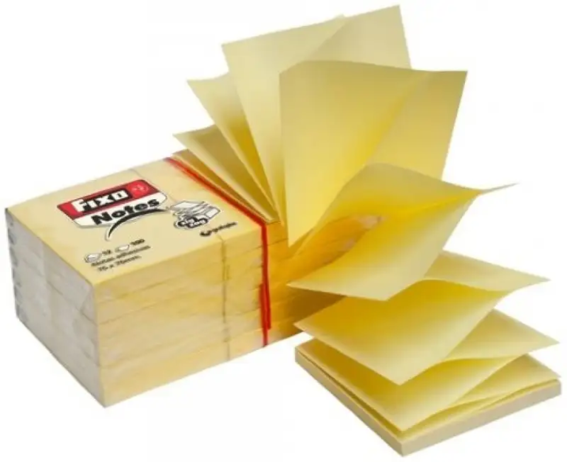 Blocs de 100 hojas adhesivas amarillas. Plegado en acordeón > listo para usar en dispensador.