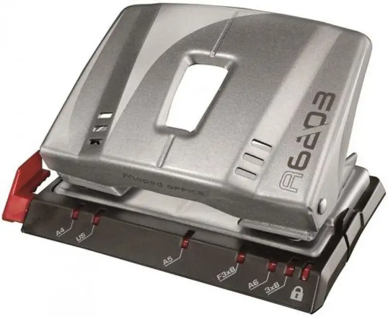 Perforadoras Advanced Metal – 2 Agujeros. Regleta ultra legible. Perforación rápida y precisa para alinear en las anillas del archivador. Se vacían fácilmente los confetis hacia adelante.