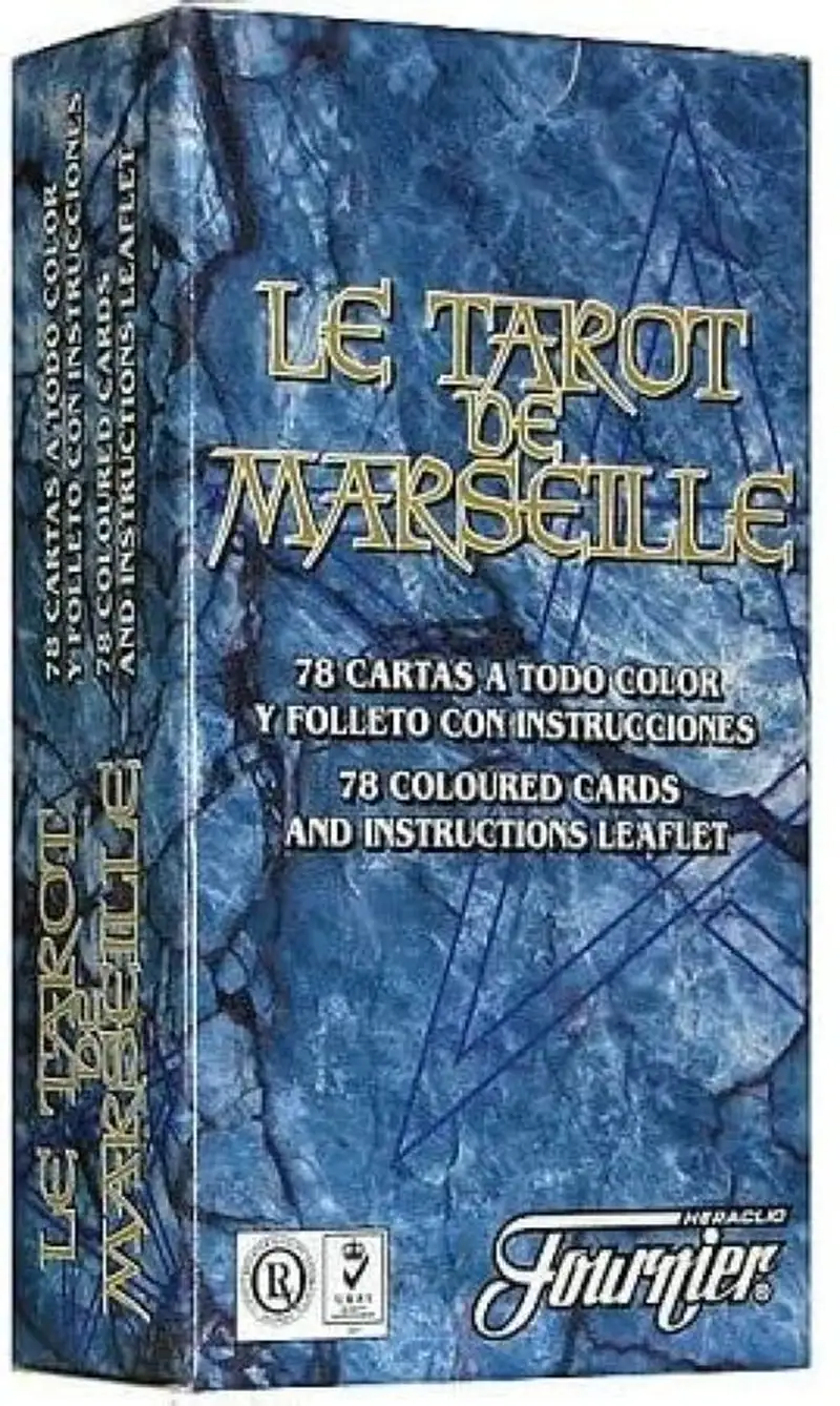 78 cartas, divididas en 22 arcanos mayores y 56 arcanos menores. Estuche de cartón, con manual de instrucciones.
